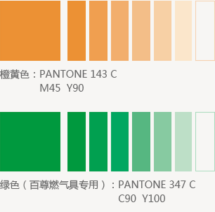 华润燃气的企业辅助色,是衬托和活跃企业标志表现的重要手段,亦是企业主色在不同环境及组合条件下的有效补充。